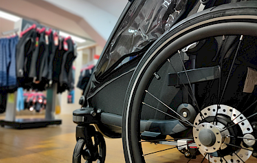 Natürlich kommen die kleinen Bikefreunde von morgen bei uns nicht zu kurz. Das passende Zubehör, wie Kinderanhänger von Thule, Transportanhänger von Bob Yak und Fahrradträger der Marken Thule und Uebler macht das Sortiment komplett.